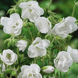 Многолетнее растение, высота 60 см. Имеет белые махровые цветки, цветет в июне. Предпочитает хорошо дренированные почвы, тень или полутень.