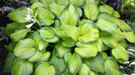 Высота листьев 60 см, высота цветоносов 80-90 см. Листья этой хосты выпуклые, блестящие, с выраженным жилкованием, имеют широкий центр светло-зелёной окраски, и более тёмные края. К концу вегетации центр становится золотистым. Окраска более интенсивно проявляется при выращивании на солнце или в лёгкой полутени. Цветы крупные, душистые, белые с едва заметным лавандовым оттенком. Почва необходима влажная, плодородная.