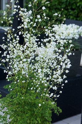 Белые колокольчатые цветки с пушистыми тычинками собраны в крупное, рыхлое, метельчатое соцветие. Нижние листья дважды или трижды перистые. Высота куста 1,5 м. Цветет в июле-августе 60-65 дней. Образует в теневой зоне роскошное белоснежное облако. При достаточном увлажнении столь же хорошо растёт и на полном солнце. Весной просыпается поздно. Неприхотлив, но растёт медленно. Почва нужна богатая гумусом, влажная, хорошо дренированная.