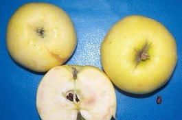 Сорт летнего срока созревания. Деревья слаборослые. Плоды средние по величине (100-115 граммов), округлые с небольшим уплощением, со слабо выраженной ребристостью, цвет их золотисто-желтый, иногда с легким красноватым «загаром». Яблоки с желтой, средней плотности, ароматной, сочной и нежной мякотью, отличного десертного вкуса. Плоды снимают в конце августа. Хранить их можно до одного месяца. Плодоносят каждый год, начиная с 6 -7 летнего возраста. Достоинства: устойчивость к парше, плодовой гнили, морозостойкость, засухоустойчивость.